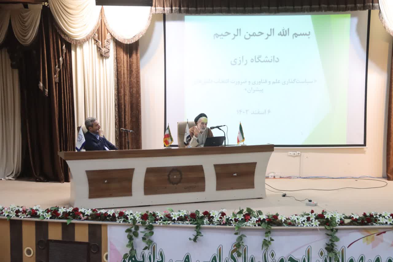 در این نشست، دکتر «سید محمد باقر نجفی»، دانشیار گروه اقتصاد دانشگاه رازی، به تحولات تاریخی بشری و انقلاب صنعتی پرداخته و مفهوم «اقتصاد دانش بنیان» را به عنوان الگوی جدید تولید در عصر حاضر معرفی کرد. دکتر «فرهاد دانش‌نیا»، دبیر این نشست و دانشیار گروه علوم سیاسی و روابط بین‌الملل دانشگاه رازی، بر اهمیت مواجهه علمی با مسائل پیچیده اجتماعی، سیاسی، اقتصادی و فرهنگی تأکید کرد و از ضرورت روزآمدسازی نقشه علمی کشور و توجه به علم و فناوری در سطح استانی سخن گفت. همچنین او به تأثیر تغییرات ساختاری در دنیای امروز و اهمیت درک این تحولات توسط جوامع اشاره کرد.